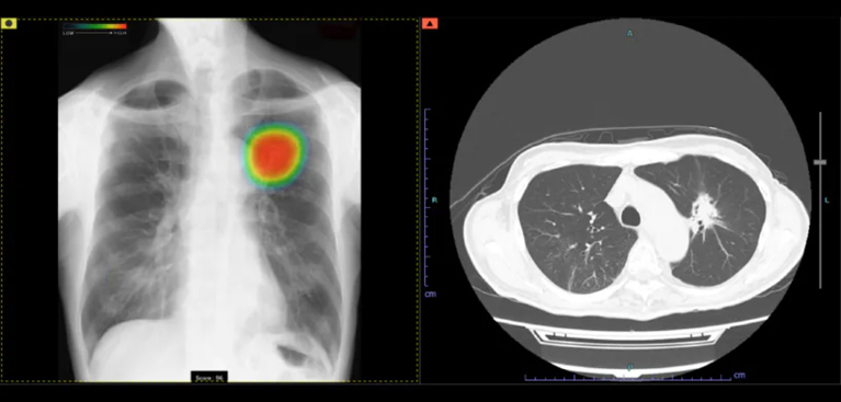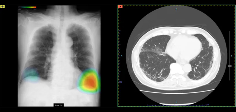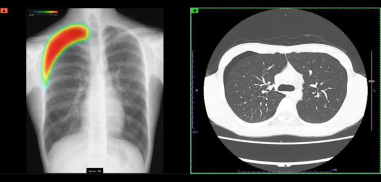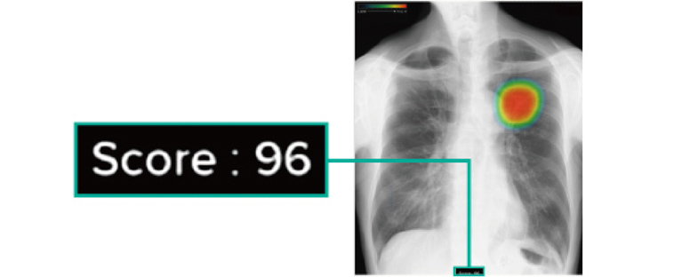 胸部レントゲン所見のスコア値は、数値が高いほど「治療が必要かもしれない病変」の可能性が高くなります。そのため、スコア値が高い場合には胸部CTによる詳しい検査を受けていただくことがあります。